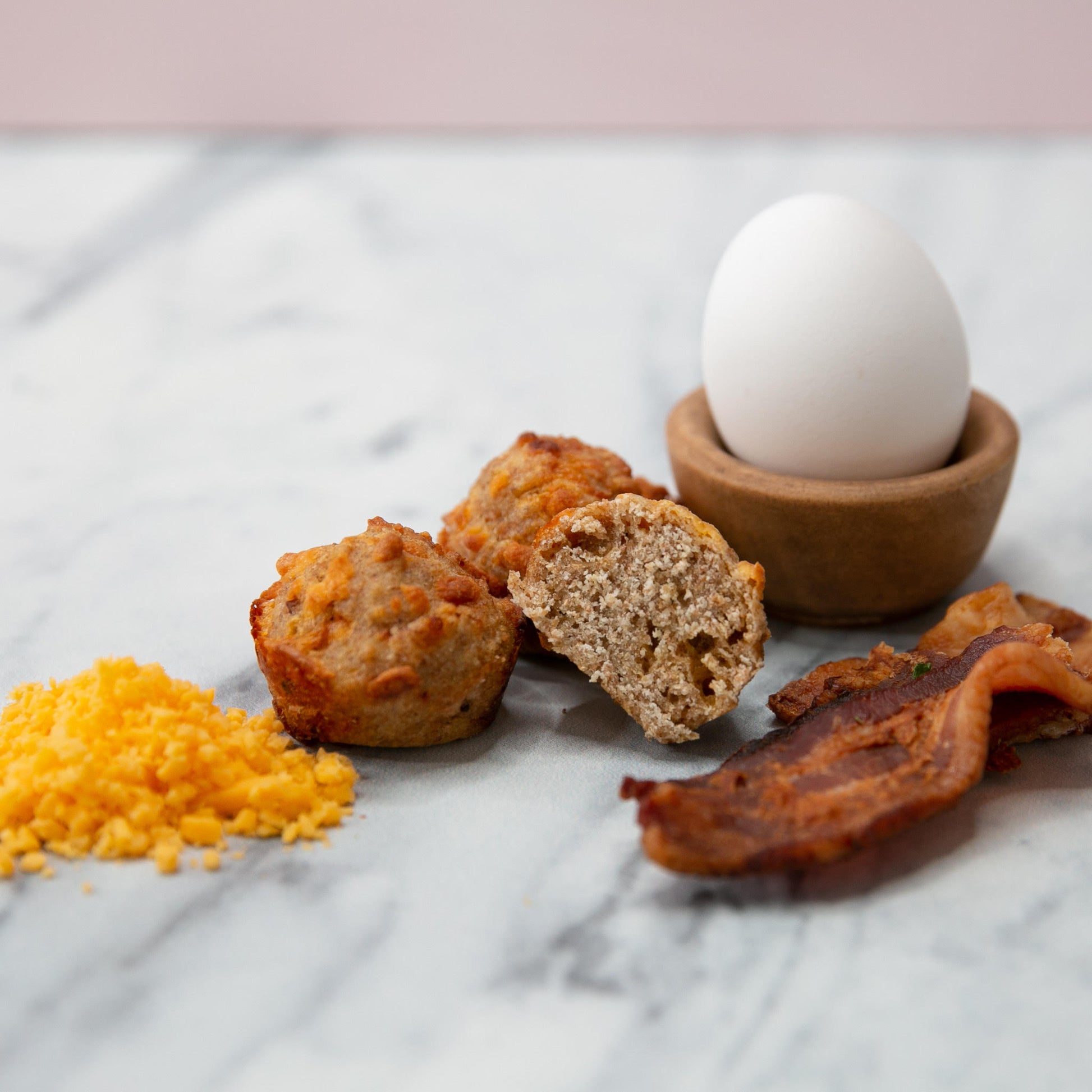 Made with whole wheat flour, cheddar cheese, bacon, eggs, milk, baking powder and olive oil.